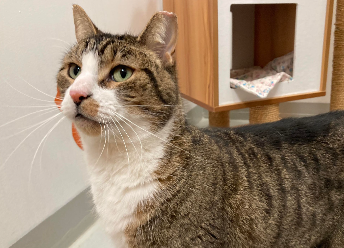 Voici Ti-loup, un magnifique félin âgé de 7 ans. Ce gros pacha est un véritable expert en câlins et en ronronnements, vous enveloppant de sa chaleur et de son affection dès que vous croisez son chemin.